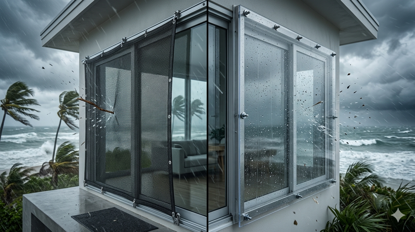 Compare hurricane mesh and rigid panels. Learn how each system protects against storms and which one fits your property best.